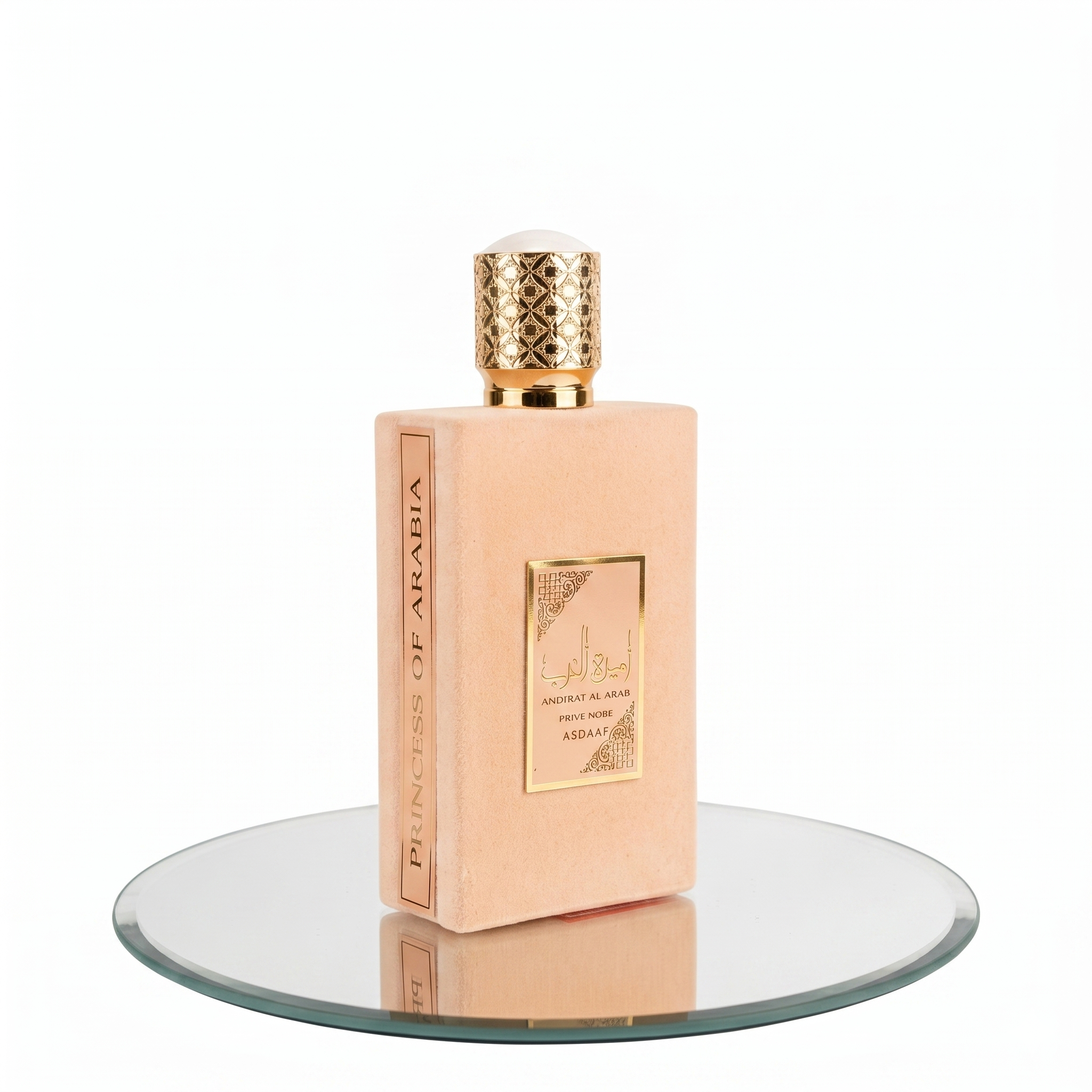 Ameerat Al Arab Prive Rose da Asdaaf Lattafa, conhecida como Princesa da Arábia, é uma fragrância feminina floral e rosada em frasco de 100ml.